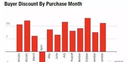RealtyTrac对过去15年中3200万住房销售情况进行调查发现,10月份购房可获得市场价格之外2.6%的折扣,在所有购房者中仅有270万(8.4%)得到了这一优惠。而4月是买房最糟糕的月份,购房者会支付超出市场价1.2%的费用。